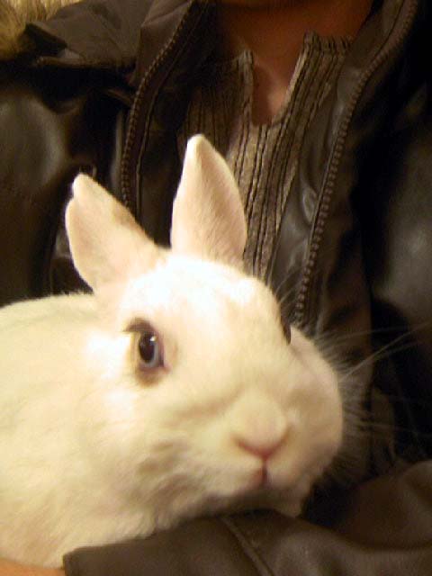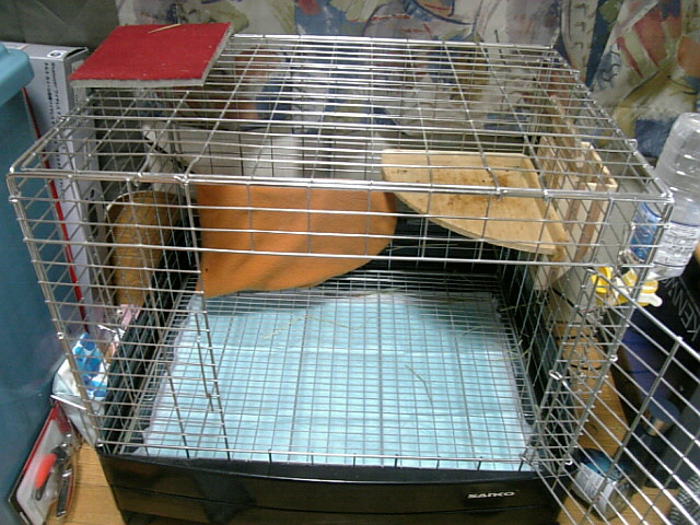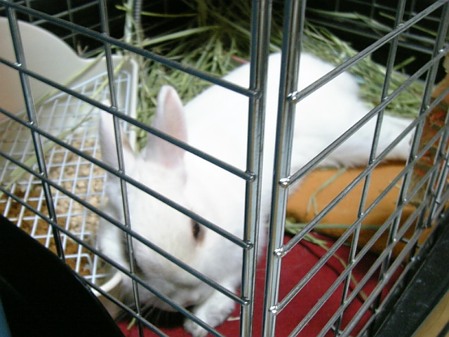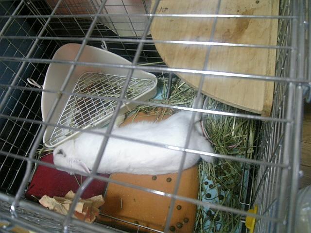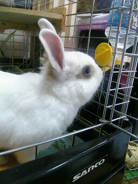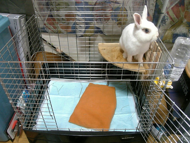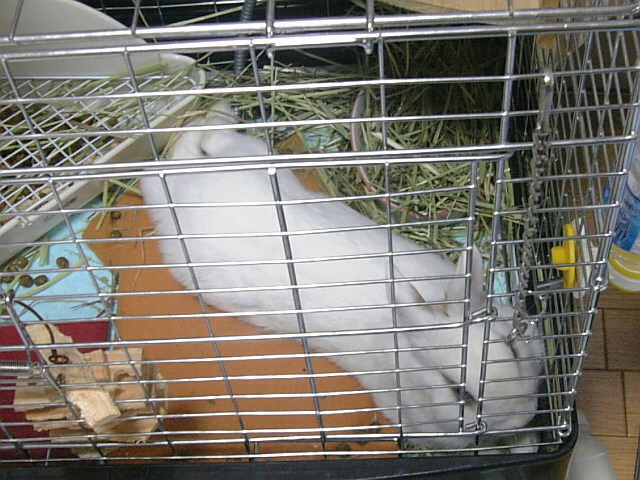 ケージの中で伸びているウサギが一匹・・・